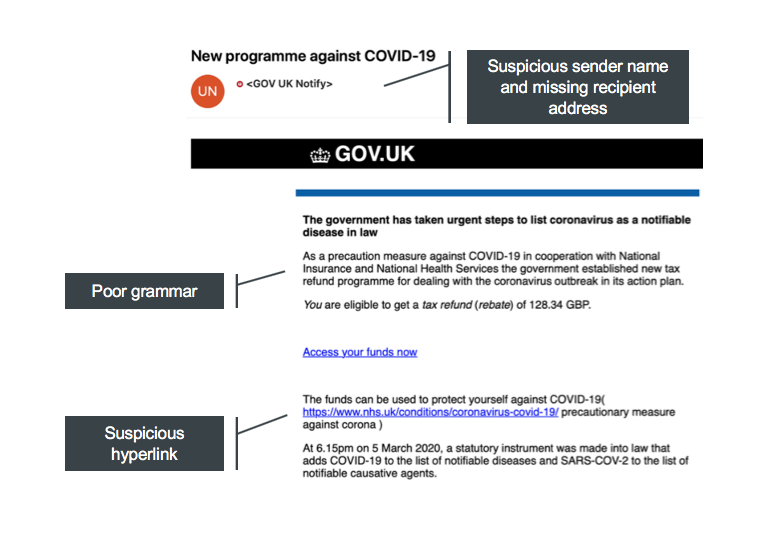 As concern around the Coronavirus has grown, unfortunately scammers have targeted mailboxes to see if anyone would fall for their usual tricks, using Covid-19 to lure people in. We know that these types of emails are not always easy to spot, so we have identified a number of examples and wanted to share these to raise awareness, in case you become a recipient of these malicious campaigns.