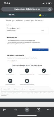 I’ve requested a refund however I am not confident that it will be applied to my next bill and I need the NOW TV boost to be removed from my account and for my account details to reflect this.